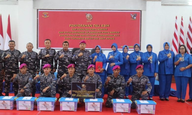 Dalam arahannya, Pangkormar menyampaikan apresiasi dan empati atas semangat pengabdian para prajurit yang tetap menjalankan tugas di tengah kondisi keluarga yang ikut terdampak. Sebagai wujud perhatian pimpinan, jenderal berbintang tiga tersebut menyerahkan tali asih kepada enam prajurit Yonmarhanlan II yang rumahnya mengalami kerusakan akibat banjir, serta bantuan kepada personel dan keluarga yang sedang menjalani perawatan kesehatan.