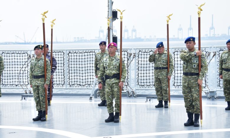 Jakarta || Panglima Korps Marinir (Pangkormar) Letnan Jenderal TNI (Mar) Dr. Endi Supardi, S.E., M.M., M.Tr.Opsla., CHRMP., CRMP., meninjau kegiatan geladi bersih Upacara Penganugerahan Tanda Kehormatan dan Sailing Pass dalam rangka peringatan Hari Ulang Tahun ke-80 Tentara Nasional Indonesia (TNI) Tahun 2025,