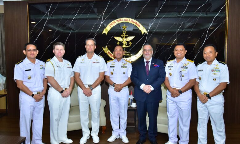 Jakarta || 14 Juli 2025 ——- Panglima Komando Lintas Laut Militer Laksamana Muda TNI Hudiarto Krisno Utomo, PSC(j) M.A., M.M.S., CHRMP bersama Pejabat Utama Kolinlamil menerima kunjungan kehormatan (courtesy call) dari Duta Besar Republik Chile untuk Indonesia, Athal Chile, beserta Komandan Kapal Latih Angkatan Laut Chile CSN Esmeralda (BE-43) dan jajaran staf Kedutaan Besar Chile di Pendopo Bhatara Kresna, Markas Komando Kolinlamil, Tanjung Priok, Jakarta Utara, Senin (14/7).