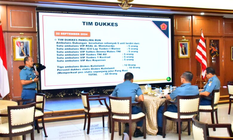 Jakarta || Koranprogresif.id, 26 Agustus 2024 – bertempat di Gedung Laut Nusantara Mako Kolinlamil, Tanjung Priok. Panglima Kolinlamil Laksda TNI Hudiarto Krisno Utomo, PSC(j) M.A., M.M.S., CHRMP bersama seluruh Pejabat Utama Kolinlamil dan Kasatker Kolinlamil menerima paparan dari Asisten Komunikasi dan Elektronika (Askomlek) Pangkolinlamil Kolonel Laut (P) Agustinus Djoko Priyanto , S.E., M.Si. terkait Panglima TNI Run Tahun 2024 yang digelar dalam rangka menyambut Hari Ulang Tahun (HUT) Ke-79 TNI Tahun 2024. Panglima TNI Run 2024 kembali hadir dan merupakan event lari tahunan yang dinanti-nantikan ini tidak hanya menjadi wadah untuk berolahraga, tetapi juga sebagai momentum kebersamaan seluruh elemen masyarakat bersama TNI dalam suasana yang penuh semangat kebangsaan. Panglima TNI Run Tahun 2024 akan diselenggarakan pada hari Minggu, 22 September 2024 di Silang Barat Daya, Monas, Jakarta dengan kategori lomba, 5K (Umum-Pelajar-Master) dan 10K (Umum-TNI/Polri-Master).