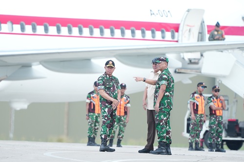 Jakarta – Panglima TNI Jenderal TNI Agus Subiyanto bersama beberapa Pejabat Negara mendampingi Presiden Republik Indonesia Prabowo Subianto meninjau latihan parade defile gabungan yang bertempat di skuadron 45 Halim Perdanakusuma, Jakarta, Selasa, (1/07/2025).