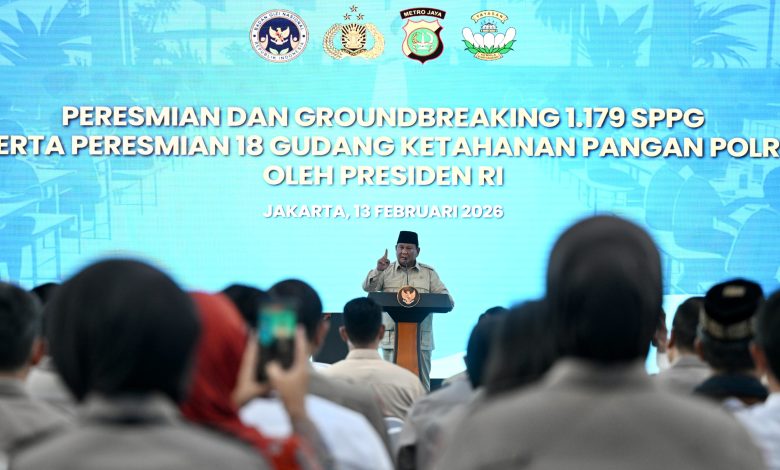 Jakarta – Panglima TNI Jenderal TNI Agus Subiyanto menghadiri peresmian 1.072 Satuan Pelayanan Pemenuhan Gizi (SPPG) dan 18 Gudang Ketahanan Pangan Polri serta groundbreaking 107 SPPG yang dipimpin Presiden RI Prabowo Subianto di SPPG Palmerah, Polres Metro Jakarta Barat, Jumat (13/2/2026).