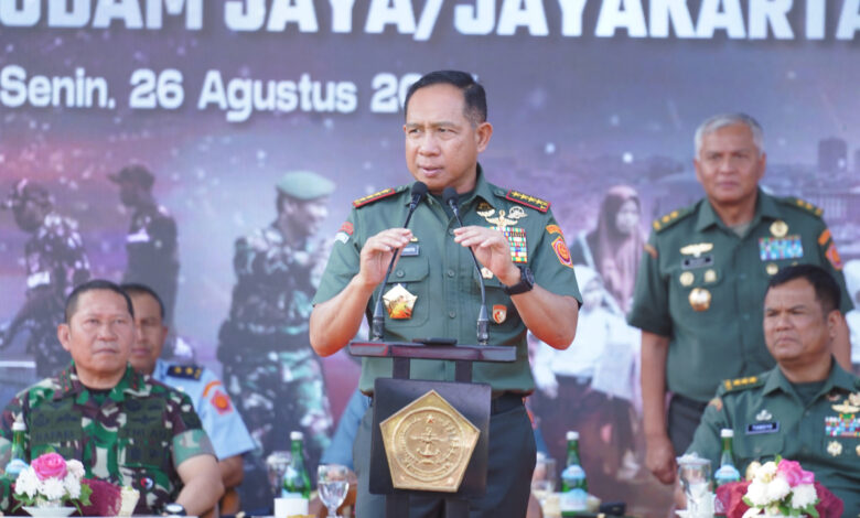 Jakarta – Panglima TNI Jenderal TNI Agus Subiyanto didampingi Wakasad Letjen TNI Tandyo Budi Revita dan Pangdam Jaya Mayjen TNI Rafael Granada Baay melaksanakan acara tatap muka dengan para Komandan Resort Militer (Danrem), Komandan Distrik Militer (Dandim), Komandan Rayon Militer (Danramil) dan Bintara Pembina Desa (Babinsa) di Jajaran Kodam Jaya/Jayakarta, bertempat di Lapangan Kartika Kodam Jaya/Jayakarta Jl. Mayjen Sutoyo No.2 Cawang, Kec. Kramatjati, Jakarta Timur, Senin (26/8/2024).