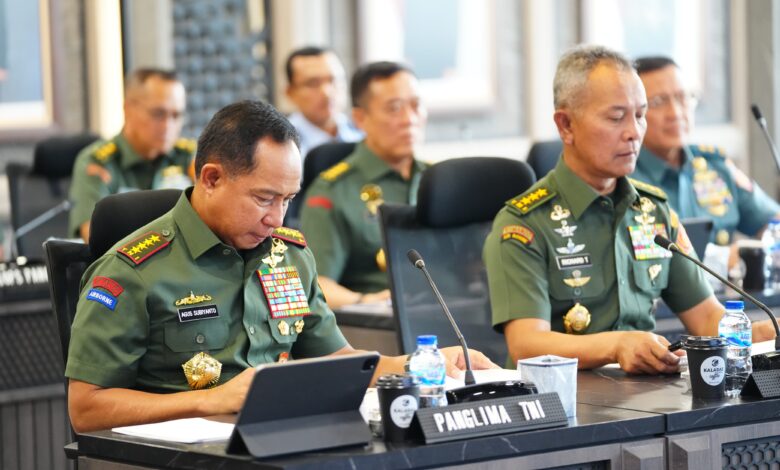 Jakarta – Panglima TNI Jenderal TNI Agus Subiyanto menghadiri Rapat Pimpinan (Rapim) Kementerian Pertahanan (Kemhan)-TNI yang berlangsung secara daring, bertempat di Ruang Paripurna, Mabes TNI, Cilangkap, Jakarta Timur, Kamis (16/01/2025)