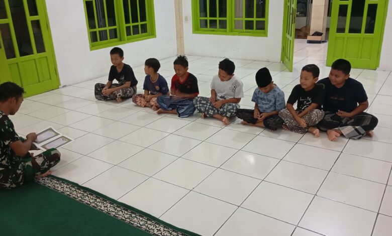 Pratu Guntur, anggota Satgas TMMD dari Yonif 203/AK, aktif mengajak anak-anak untuk belajar membaca Al-Qur’an, terutama surat-surat pendek. Kegiatan ini dilakukan setiap pagi usai sholat subuh berjamaah di musala setempat. Menurutnya, membentuk kebiasaan baik sejak dini sangat penting dalam membangun karakter generasi muda yang berakhlak dan disiplin.