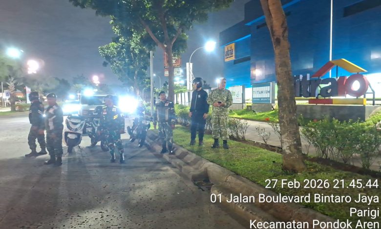 Tangerang – Dalam rangka menjaga keamanan dan kenyamanan masyarakat selama bulan suci Ramadhan, personel Babinsa Koramil 01/Tgr dan Babinsa Koramil 07/Pondok Aren Kodim 0506/Tgr bersama Komduk (Komponen Pendukung) melaksanakan patroli gabungan di wilayah teritorial Kodim 0506/Tgr, Jum’at malam (27/02/2026).