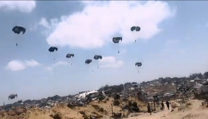 Pemandangan menggetarkan hati ini terjadi, usai dua pesawat Hercules C-130J milik TNI AU membelah cakrawala Gaza, menerjunkan bantuan kemanusiaan dari tanah air, Indonesia, untuk masyarakat Gaza, Palestina, Senin (18/08/2025).