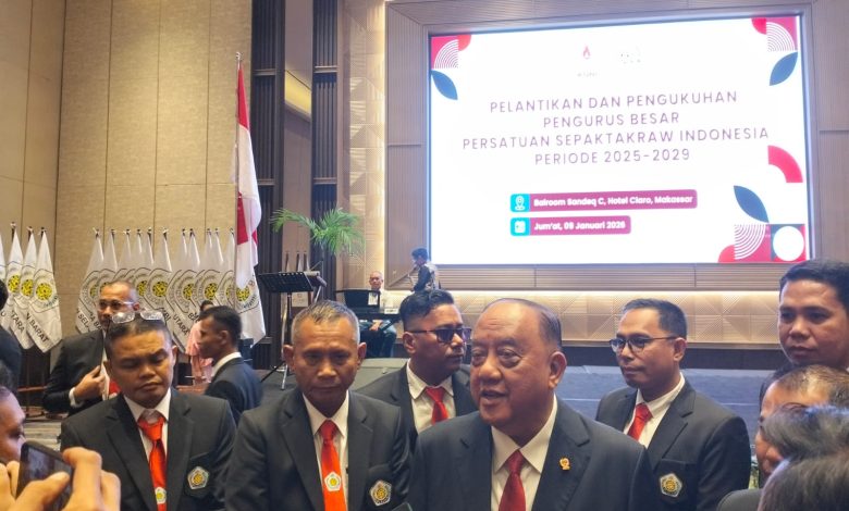MAKASSAR || Koranprogresif.id – Ketua Umum Komite Olahraga Nasional Indonesia (KONI) Pusat, Marciano Norman, melantik Pengurus Besar Persatuan Sepak Takraw Indonesia (PB PSTI) periode 2025–2029 di Claro Hotel Makassar, Jum’at (9/1/26).