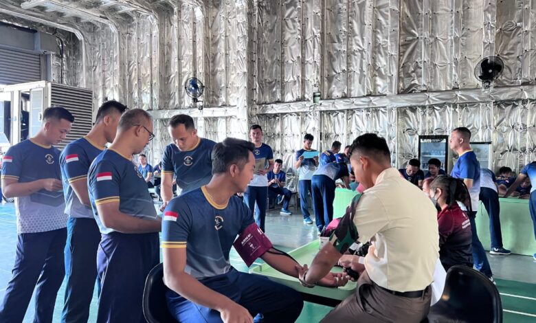 Jakarta || Koranprogresif.id, 25 Oktober 2024 – Guna memenuhi ketersediaan stok darah di PMI Merauke yang saat ini mengalami kekurangan, KRI Teluk Palu-523 yang tengah sandar di Pelabuhan Umum Yos Sudarso Merauke, mengelar bakti sosial berupa Donor Darah yang bekerja sama dengan Diskes Lantamal XI Merauke dan PMI Merauke, pada hari Jumat (25/10). Donor darah tersebut dilaksanakan di tank deck KRI Teluk Palu-523, dengan dihadiri Komandan KRI Teluk Palu-523 Letkol Laut (P) Adrian Wijanarko dan Kadiskes Lantamal XI Merauke Letkol Laut (K) Triwiyono.