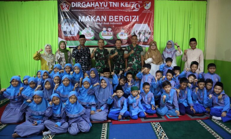 Jaksel || Koranprogresif.id, Dalam rangka HUT Ke-79 TNI, Kodim 0504/Jakarta Selatan mengadakan Makan Bergizi geratis di tiga lokasi yaitu, TK dan SD Kartika yang berlokasi di Jalan Cendrawasih Raya, Kebayoran Lama serta di Yayasan Yatim Piatu Darulaitam, Ciputat Raya Pondok Pinang Jakarta Selatan, Jum’at 11/10/2024.