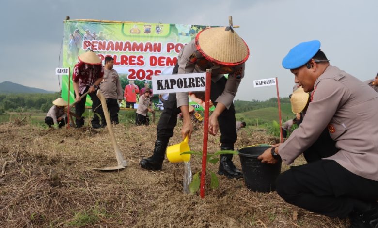 DEMAK || Koranprogresif.id – Kepolisian Resor (Polres) Demak kembali menunjukkan komitmennya dalam menjaga kelestarian lingkungan dengan menggelar kegiatan penanaman pohon di lahan milik Perhutani yang berada di Desa Wonosekar, Kecamatan Karangawen, Kabupaten Demak, Kamis (18/12/2025).