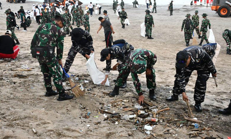 PEDULI LINGKUNGAN, TNI AL DUKUNG AKSI BERSIH-BERSIH DI PANTAI KUTA