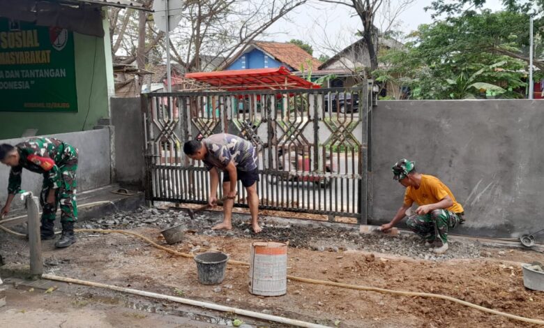 Tigaraksa || Koranprogresif.id, Babinsa Koramil 12/Rajeg, Kodim 0510/Trs melaksanakan karya Bhakti (Karbak) melakukan pembuatan pagar pangkalan Makoramil 12/Rajeg.