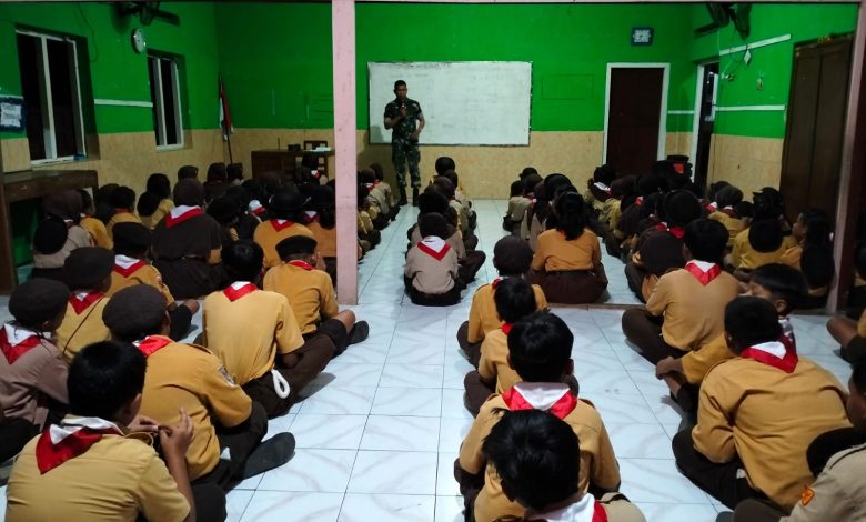 Pembinaan Kepemimpinan Generasi Muda, Danramil 06/Kebonarum Isi Materi Dianpinru Di Gugus Depan SD Negeri 1 Glodogan Klaten