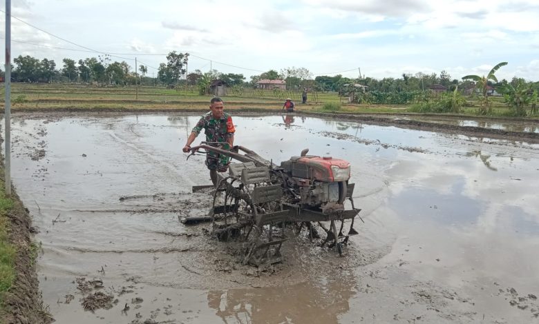 Pendampingan Petani, Babinsa Kodim Ponorogo Bantu Bajak Sawah