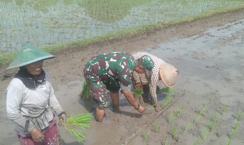 Pendampingan Petani, Babinsa Kodim Ponorogo Bantu Tanam Padi