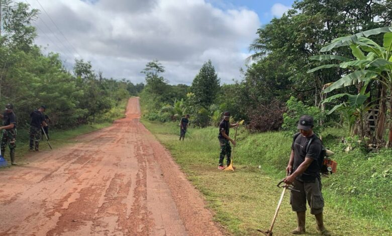 Merauke – Sebagai wujud kepedulian terhadap kebersihan lingkungan dan mempererat kemanunggalan TNI dengan rakyat, Satgas Pamtas RI-PNG Yonif 312/KH menggelar kegiatan karya bakti bersama masyarakat Kampung Sipias, Distrik Eligobel, Kabupaten Merauke, Papua Selatan, pada Selasa (25/3/2025). Kegiatan yang dipimpin oleh Wadansatgas Yonif 312/KH Kapten Inf Bayu Pamungkas, ini difokuskan pada pembersihan jalan kampung guna menciptakan lingkungan yang lebih bersih dan sehat.