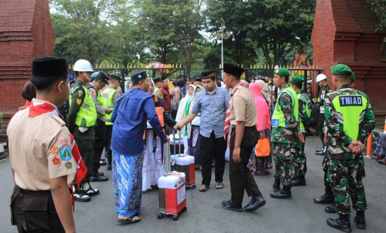 Personel Kodim 0806/Trenggalek bersama Subdenpom Persiapan dan Polres Trenggalek bahu membahu memberikan pengamanan maksimal. Tak sekadar menjalankan tugas, mereka menjadi penjaga ketenangan hati ribuan warga yang menitipkan harap pada keberangkatan suci ini.