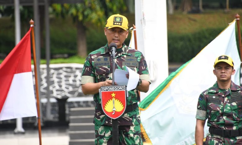 SEMARANG || Koranprogresif.id – Pangdam IV/Diponegoro, Mayjen TNI Achiruddin, S.E, M.Han, melalui Kajasdam, Kolonel Arm Suharyanto, S.Sos, M.H, memimpin upacara penyematan sabuk kenaikan tingkat sekaligus penutupan Latihan Kader Pelatih (Latkadertih) Pencak Silat Militer (PSM) Terpusat Jajaran Kodam IV/Diponegoro Tahun 2025. Upacara berlangsung di GOR Patriot Kodam IV/Diponegoro, Rabu (17/9/2025).