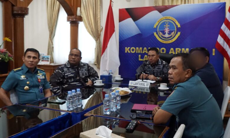 Komandan Lantamal III Laksamana Pertama TNI Uki Prasetia, S.T., M.M. yang diwakili oleh Wakil Komandan (Wadan) Lantamal III Kolonel Laut (P) Ranu Samiaji, S.T., M.H., M.Tr.Opsla. mengikuti kegiatan pemusnahan barang bukti narkoba jenis sabu-sabu yang dilaksanakan di Alun-alun Engku Puteri Batam, melalui video conference bertempat di Mako Lantamal III, Jakarta Utara, Kamis (12/6).