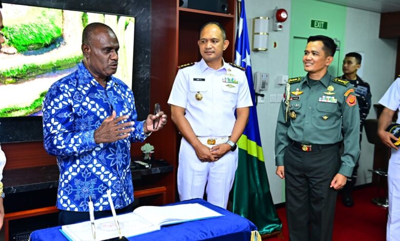 Sorong || Koranprogresif.id, Koarmada III. Perdana Menteri Negara Solomon Islands Mr. Jeremiah Manele melaksanakan kunjungan kehormatan ke Satuan Tugas (Satgas) Port Visit 2024 diatas KRI dr. Wahidin Sudirohusodo (WSH-991) yang sandar di Salomon Island Port Terminal, Dowling Street, Honiara, Salomon Islands. Minggu, (27/10/24)