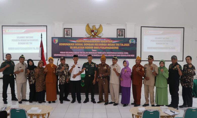 TULUNGAGUNG || Koranprogresif.id – Kodim 0807/Tulungagung menggelar kegiatan Komunikasi Sosial (Komsos) dengan Keluarga Besar TNI (KBT) Tahun Anggaran 2025 yang dibuka secara langsung oleh Kepala Staf Kodim (Kasdim) Tulungagung, Mayor Arh Untung Wiyono, ST, di Aula Pandu Sakti Makodim 0807/Tulungagung, Jl. Jaksa Agung Suprapto No. 17, Kelurahan Kampungdalem, Kecamatan Tulungagung, Kabupaten Tulungagung, Jawa Timur, Senin (23/06/2025).
