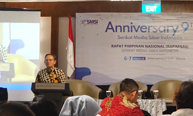 JAKARTA || Koranprogresif.id – Serikat Media Siber Indonesia (SMSI) menggelar Rapat Pimpinan Nasional (Rapimnas) di Millennium Hotel Sirih, Jakarta, pada Jumat–Sabtu, 6–7 Maret 2026. Kegiatan ini sekaligus menjadi momentum peringatan Hari Ulang Tahun (HUT) ke-9 SMSI, organisasi yang menaungi ribuan perusahaan pers siber di Indonesia.