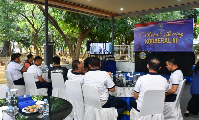 Komandan Kodaeral III, Laksamana Muda TNI Uki Prasetia, S.T., M.M., yang didampingi Kepala Dinas Penerangan TNI AL, Laksamana Pertama TNI Tunggul, M.Han., menggelar Media Gathering dengan Nusantara TV di Lapangan Tembak Harsono, Kodaeral III, Jl. Gunung Sahari No. 2, Jakarta Utara, Jumat (17/10).