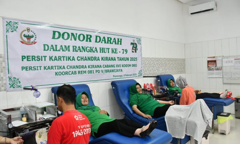 PONOROGO || Koranprogresif.id – Persit Kartika Chandra Kirana (KCK) Cabang XVI Kodim Ponorogo hari ini menggelar kegiatan Bakti Sosial (Baksos) donor darah bertempat di Kantor Palang Merah Indonesia (PMI) Ponorogo jalan Dr. Sutomo Kota / Kabupaten Ponorogo, Rabu (05/02/2025).