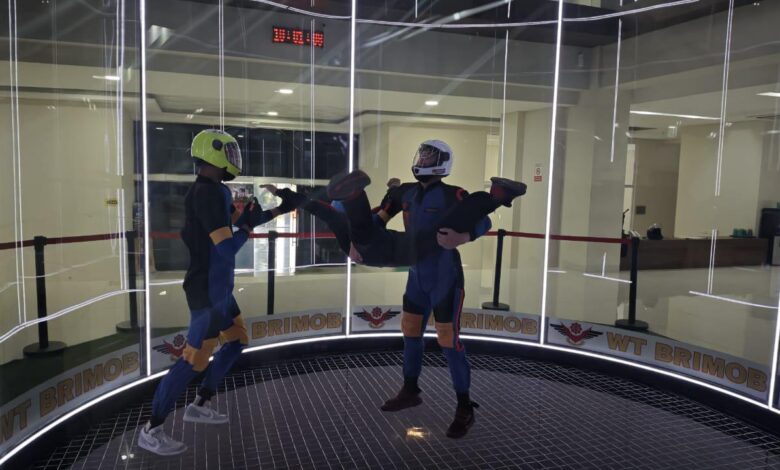 Personel Batalyon A Brimob Kaltim, Tingkatkan Kemampuan Terjun Free Fall Dengan Berlatih Di Wind Tunnel