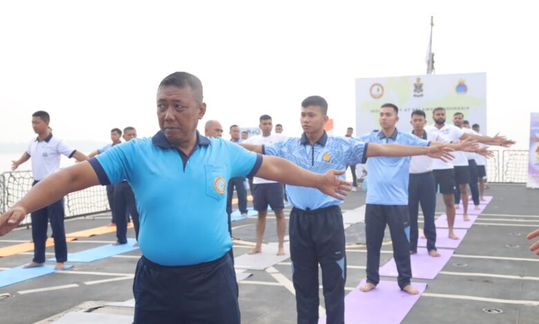 Belawan || Koranprogresif.id, Personel Pangkalan Utama TNI Angkatan Laut I (Lantamal I) melaksanakan olahraga bersama Senam Yoga dengan ABK Kapal Perang India INS Saryu P54, bertempat di Deck Kapal dan Dermaga Pelindo 104 Belawan, Sumatera Utara, Sabtu (21/6/2025).