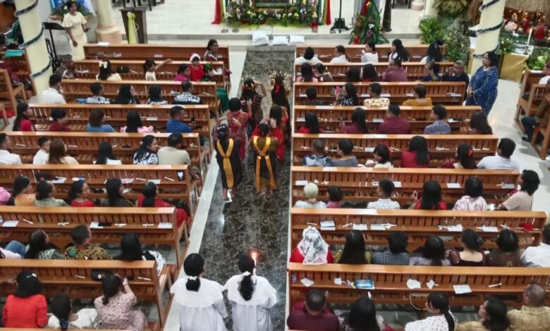 Personel Lanud Sultan Hasanuddin Serta Masyarakat Gelar Ibadah Natal di Gereja Katolik Bunda Maria dan Gereja POUK Lahai-Roi