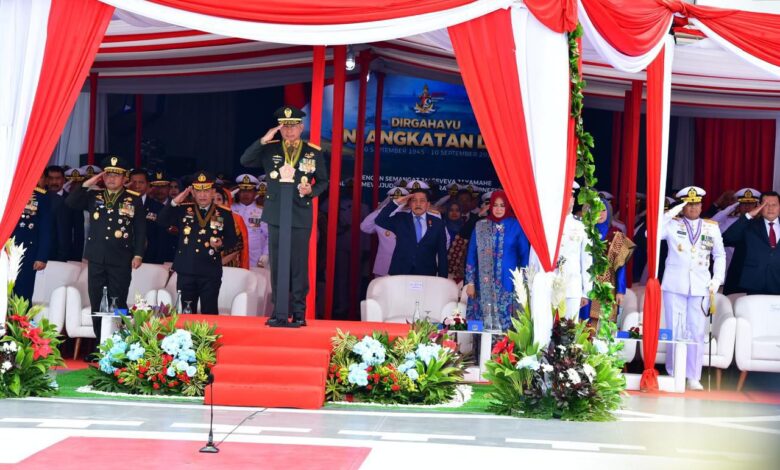 JAKARTA || Koranprogresif.id – Peringatan Hari Ulang Tahun Ke-79 TNI AL yang jatuh pada setiap tanggal 10 September dipusatkan di Jakarta dipimpin langsung Panglima TNI, Jenderal TNI Agus Subiyanto didampingi Kepala Staf Angkatan Laut (Kasal), Laksamana TNI Dr. Muhammad Ali, bertempat di Geladak Heli KRI dr. Widyodiningrat-992 yang berlayar di Teluk Jakarta, Selasa (10/09).