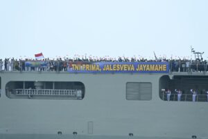 JAKARTA || Koranprogresif.id – Peringatan Hari Ulang Tahun Ke-79 TNI AL yang jatuh pada setiap tanggal 10 September dipusatkan di Jakarta dipimpin langsung Panglima TNI, Jenderal TNI Agus Subiyanto didampingi Kepala Staf Angkatan Laut (Kasal), Laksamana TNI Dr. Muhammad Ali, bertempat di Geladak Heli KRI dr. Widyodiningrat-992 yang berlayar di Teluk Jakarta, Selasa (10/09).