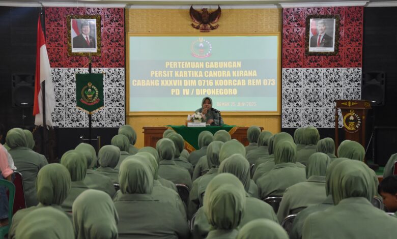 DEMAK || Koranprogresif.id – Persit Kartika Chandra Kirana Cabang XXXII Dim 0716 Koorcab Rem 073 PD IV/Diponegoro menggelar pertemuan gabungan dengan seluruh anggota Persit jajaran Kodim 0716/Demak di aula Makodim, Jl. Kyai Singkil No.1 Demak, Kamis (25/06/2025).