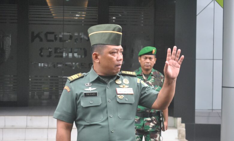 Pasi Pers Kapten Inf Triyadi ketika memimpin apel pagi, di halaman Makodim 0510/Tigaraksa, Senin, (16/12/2024).