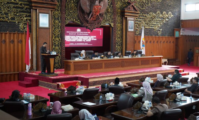 Apresiasi tersebut disampaikannya saat menghadiri Rapat Paripurna dengan agenda Pemandangan Umum Fraksi-Fraksi Terhadap Nota Pengantar Ranperda APBD Provinsi Jambi Tahun 2025 yang diselenggarakan di Ruang Rapat DPRD Provinsi Jambi dengan dipimpin langsung oleh Ketua DPRD Provinsi Jambi, M. Hafiz, Selasa (19/11/2024) sore.