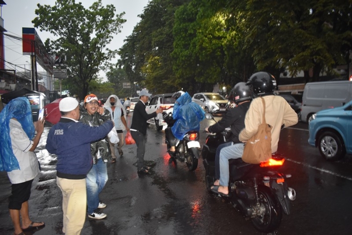 Hanya dalam waktu sekitar 30 menit, anggota dan pengurus PWI Pokja Kota Bandung berjibaku menerjang dinginnya hujan untuk membagikan paket makanan berbuka puasa. Tubuh dan tangan yang dingin terbayar lewat senyum hangat yang terlihat dari masyarakat dan pengendara yang menerima.