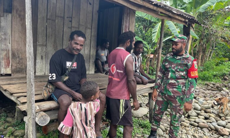 Fawi – Babinsa Pos-ramil 1714-07/Fawi, Pratu Paskah Mak Koreri Ansek, Melaksanakan Komunikasi Sosial (Komsos) Dalam Rangka Pembinaan Teritorial (Binter), Dengan Aparatur Desa Dan Warga Binaannya, Bertempat Di Desa Fawi, Kabupaten, Puncak Jaya, Sabtu (26/12/2025).