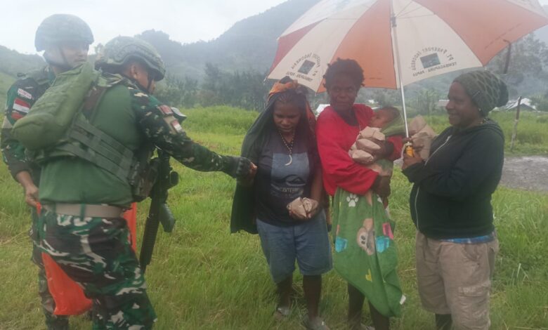 Sementara itu, Ani Enumbi (34) warga Wuyuneri Distrik Mulia, Kabupaten Puncak Jaya, Papua mengucapkan terima kasih kepada personel Pos Wuyuneri Satgas Pamtas Kewilayahan Yonif 715/Motuliato karena telah peduli dan sayang kepada mereka. (Satgas Yonif 715/Mtl)