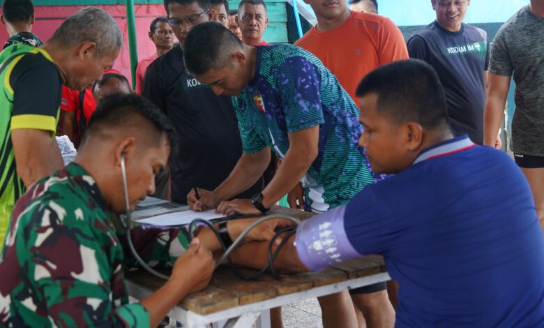Sebelum pelaksanaan tes, seluruh peserta terlebih dahulu menjalani pemeriksaan tekanan darah oleh tim medis dari Denkesyah 04.02 IM Meulaboh, guna memastikan kondisi kesehatan dan mencegah terjadinya cedera atau risiko kesehatan lainnya.