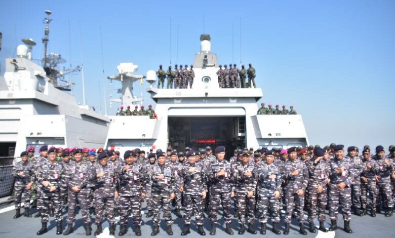 Surabaya || Koranprogresif.id, Prajurit Korps Marinir TNI Angkatan Laut yang tergabung dalam Satgas _Multilateral Rim of The Pacific_ (Rimpac) 2024, ikuti penyambutan kedatangan KRI Raden Eddy Martadinata-331 yang telah kembali ke Indonesia berlayar melewati Samudra Pasifik selesai melaksanakan Latma Multilateral Rimpac 2024 Hawaii.