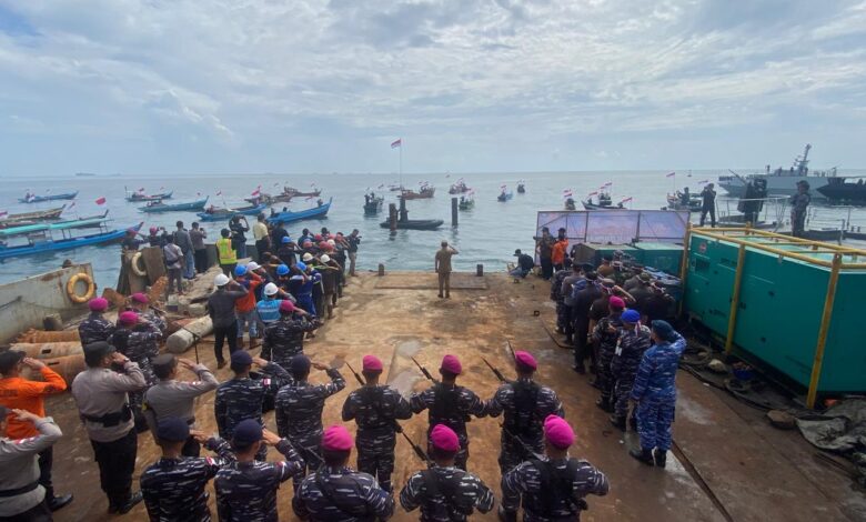 PRAJURIT LANAL BINTAN TURUT SERTA DALAM PENGIBARAN BENDERA DI PERAIRAN KARANG SINGA
