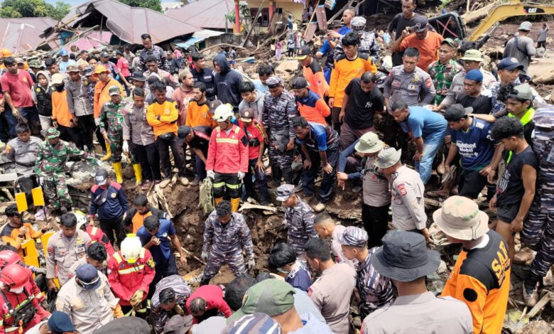 “Hingga saat ini seluruhnya masih melakukan bantuan evakuasi pencarian korban jiwa dan membersihkan fasilitas umum. Selain itu, Ibu-ibu Pengurus Jalasenastri Lanal Ternate juga memberikan bantuan berupa Sembako kepada terdampak korban bencana banjir bandang,” jelas Komandan Lanal Ternate.