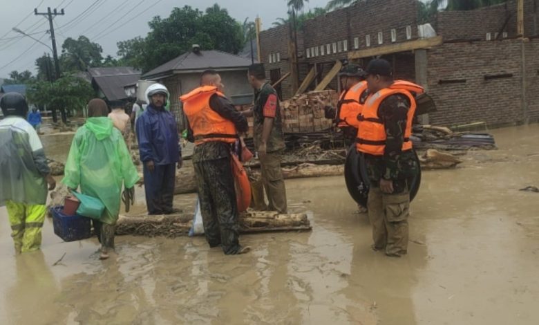 Prajurit TNI Berhasil Evakuasi Warga Banjir Batangtoru, Tapanuli Selatan