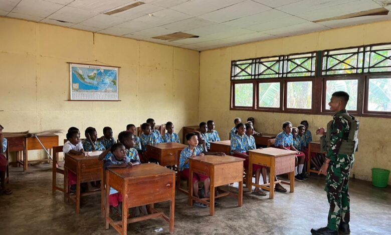 Prajurit Yonif 312/KH Bantu Pendidikan di Perbatasan Papua, Bangun Generasi muda dengan semangat
