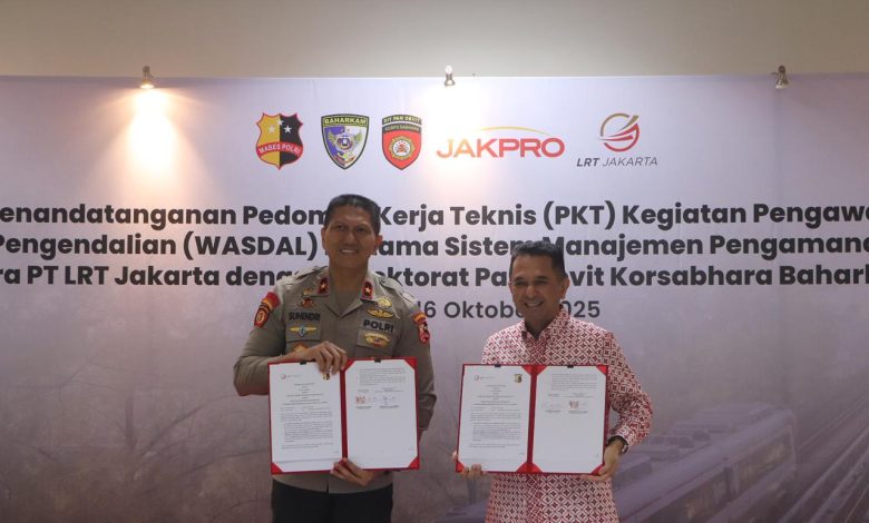 JAKARTA || Koranprogresif.id – PT. LRT Jakarta, sebagai pengelola layanan transportasi publik Light Rail Transit (LRT) di Jakarta, secara resmi memperkuat komitmennya dalam menjamin keamanan dan kenyamanan penumpang serta aset perusahaan. Hal ini ditandai dengan dilaksanakannya Penandatanganan Pedoman Kerja Teknis (PKT) Pengawasan dan Pengendalian (Wasdal) Sistem Manajemen Pengamanan (SMP) antara PT. LRT Jakarta dengan Direktorat Pengamanan Objek Vital (Ditpamobvit) Korsabhara Baharkam Polri.