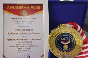 SAMBAS || Koranprogresif.id – Prestasi membanggakan kembali ditorehkan dunia pendidikan di Kabupaten Sambas. SMP Negeri 2 Sambas berhasil meraih penghargaan Museum Rekor Dunia Indonesia (MURI) sebagai peringkat 8 atau masuk 10 besar peserta Puisi Etnik Pelajar Nusantara tingkat ASEAN yang diselenggarakan oleh Perruas (Perkumpulan Rumah Seni Asnur) pada Desember 2025.