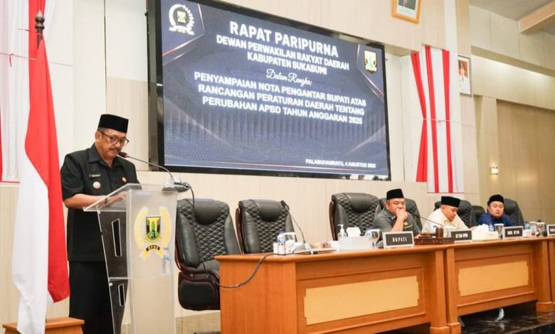SUKABUMI || Koranprogresif.id – Dewan Perwakilan Rakyat Daerah (DPRD) Kabupaten Sukabumi menggelar rapat paripurna dengan agenda Penyampaian Nota Pengantar Bupati Atas Rancangan Peraturan Daerah Tentang Perubahan APBD Tahun Anggaran 2025 di Ruang Rapat Utama DPRD Pelabuhanratu, Senin (04/08/2025).