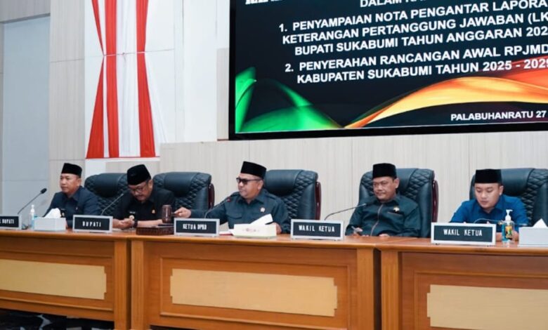 Rapat ini membahas dua agenda utama: Penyampaian Nota Pengantar Laporan Keterangan Pertanggungjawaban (LKPJ) Bupati Sukabumi Tahun Anggaran 2024 dan Penyampaian Rancangan Awal RPJMD Kabupaten Sukabumi Tahun 2025-2029.